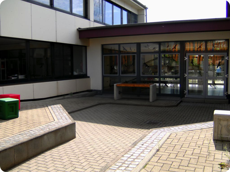 Die Neugestaltung des Innenhofs vor der Mensa mit entsprechendem Mobiliar erfolgt in Projektarbeiten im Unterricht an der Schule.